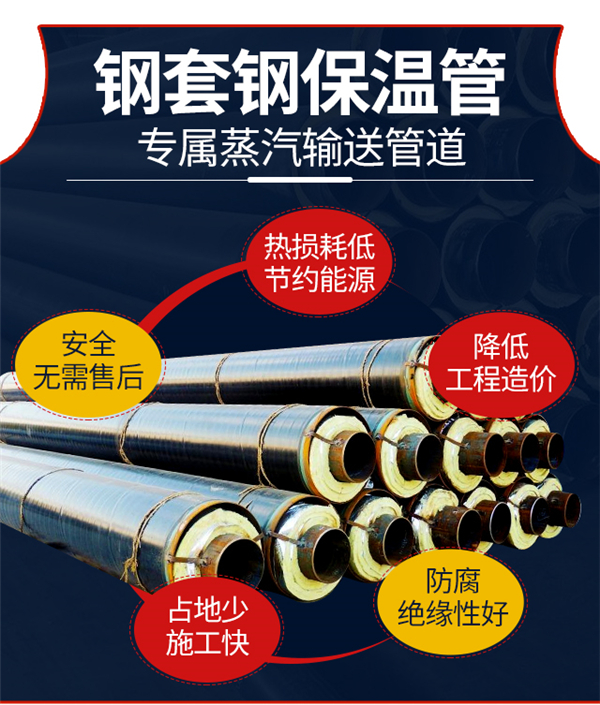 钢套钢蒸汽保温管由输送介质的黄瓜视频观看官网,聚氨酯硬质泡沫保温层和高密度聚乙烯外套管紧密结合而成,该产品主要用于城 镇集中供热管网,石油输送管线,高寒地区输水管线及厂区工业管道工程,它具有高效保温、防水防腐和施工简便,不怕 植物根刺的优点,施工不需地沟敷设,能在0.6-1.2米冻土层内直埋,热损失比传统工艺可降低40%,使用寿命比其他绝热 防腐材料提高3-5倍以上,使用寿命可达30-50年。