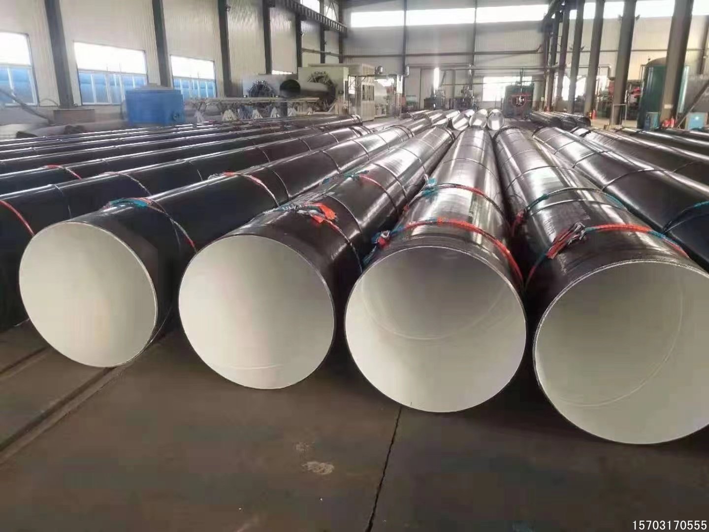 距防腐管 两端 2m 处, 按顾客要求用 PP 绳缠 2 道或 3 道,并 用尼龙扎带扎紧。带 有 管端保护圈的管端应装保护圈, 并 上紧, 防止保护圈脱落和损伤管 口。
