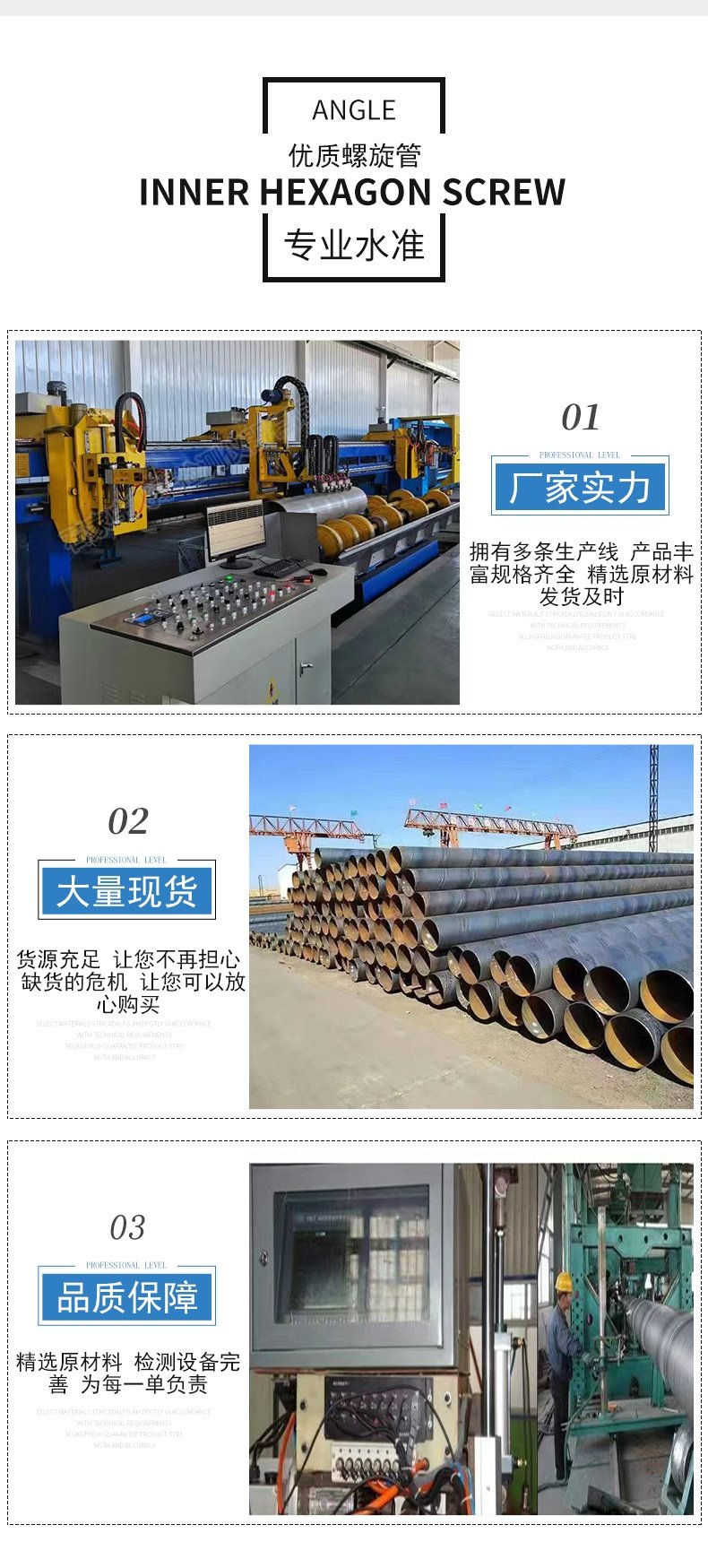 螺旋焊接黄瓜视频观看官网采用双面埋弧自动焊技术,即带钢按预定的螺旋角(一般为50.8°)成型于焊接圆模上,通过边部加热到焊接温度后进行螺旋状焊接而成。此工艺不仅生产效率高,而且焊缝质量稳定,能够承受较大的轴向力、环向力和弯矩。焊接过程中,严格控制焊接电流、电压及焊接速度,确保焊缝的强度和韧性。