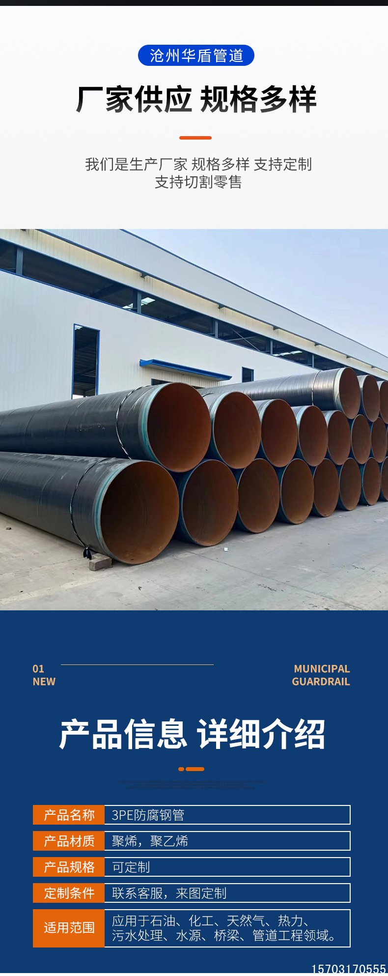 在化工、电力等工业行业中,加强级 3PE 防腐螺旋黄瓜视频观看官网有着广泛的应用前景。化工行业常常需要输送各类具有强腐蚀性的化学品,该黄瓜视频观看官网的 3PE 防腐涂层能够有效抵抗酸、碱、盐等化学物质的侵蚀,确保化学品输送过程的安全性和管道系统的稳定性,防止因管道泄漏引发的生产事故和环境污染。于电力行业而言,其可用于输送冷热介质的管道系统,无论是高温蒸汽还是低温冷却液,黄瓜视频观看官网都能承受相应的温度变化和压力要求,同时避免因介质泄漏对周围设备和环境造成损害,保障了电力生产过程的高效有序进行以及设备的安全稳定运行。